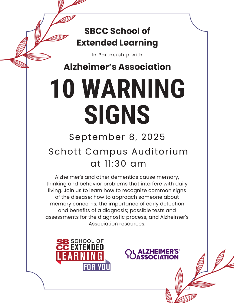 September 8 School of Extended Learning in Partnership with Alzheimer's Association presents: "10 Warning Signs"